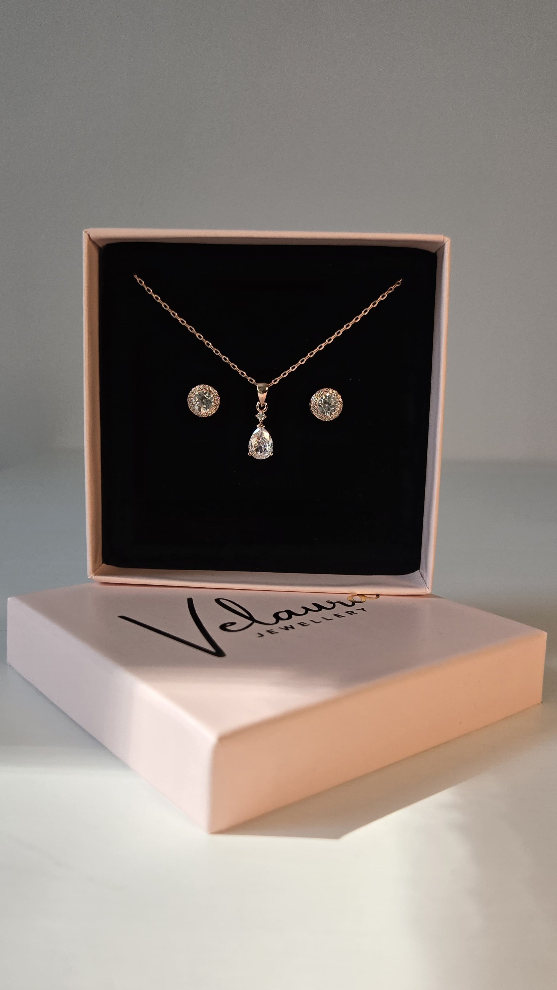Sophia Earrings & Princess Pendant Set β Rose Gold and Crystal